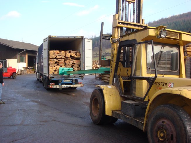 Der Schnittholztransport erfolgt mit Sattelschleppern. Durch unsere eigenen LKW's sind wir sehr flexibel und können schnell reagieren. Auch bieten wir Ihnen die Möglichkeit einer Verladung in Übersee-Container.